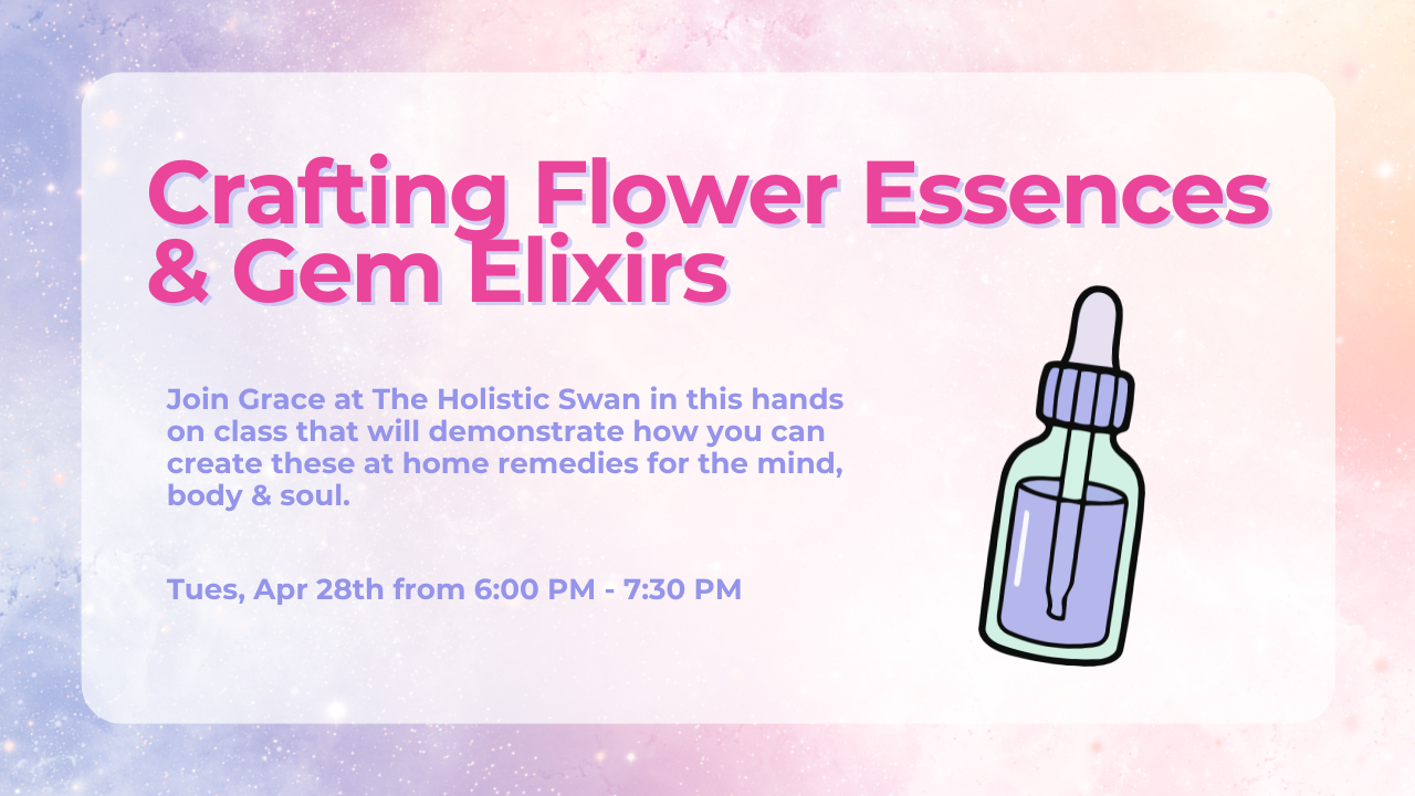 Step into the magical world of working with the frequencies of flowers and crystals to create your very own flower essences and gem elixirs. Join Grace in this hands on class that will demonstrate how you can create these at home remedies for the mind, body & soul.