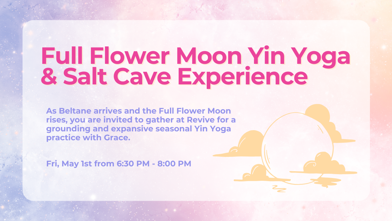 As Beltane arrives and the Full Flower Moon rises, you are invited to gather at Revive for a grounding and expansive seasonal Yin Yoga practice. This will be a beautiful pause to replenish the body, quiet the mind, and welcome the beauty of this season. Come celebrate the full moon with us & unwind.