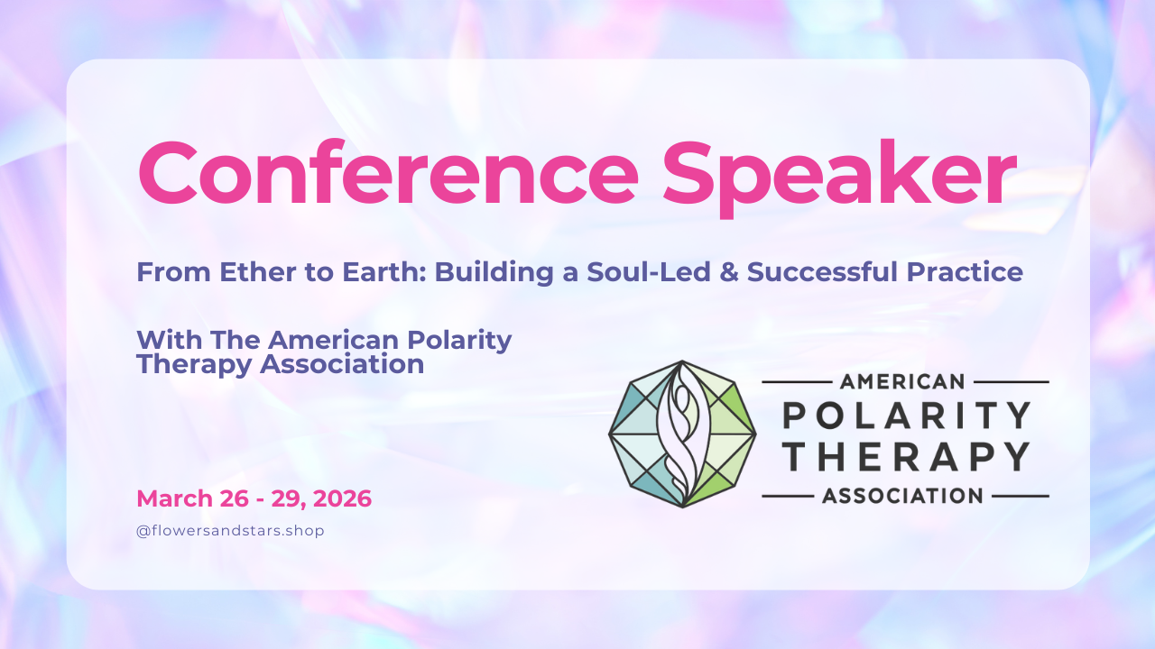 A creative, elements-based approach to building an energetically aligned healing practice. Moving through the elemental step-down process, participants explore inspiration, limiting beliefs, aligned action, and grounded structure—integrating principles from “Manifesting Your Magical Business” and sustainable marketing strategies.
